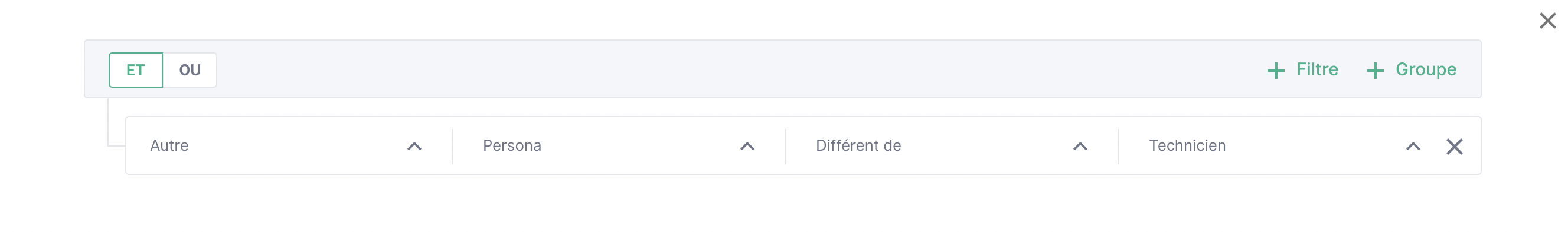 Cela signifie que la source "Techniciens" **s'affiche SI** la Persona est différente de Techniciens.