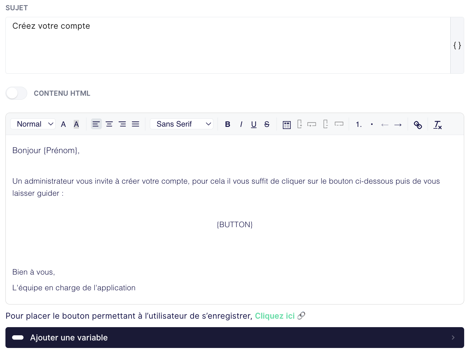 Il est également possible de l’écrire en HTML pour plus de personnalisation, en cochant l’option dédiée.